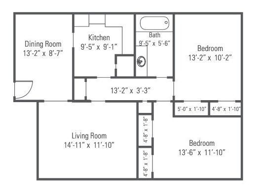 Modelo de apartamento: 2 Bed 1 Bath | B$1,2152 Dormitorios, 1 Baño, 944 sq ftDisponible Ahora![]()