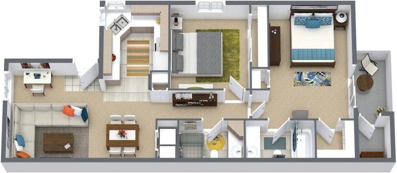2 Dormitorios, 2 Baños, 1000 pies²El más grandeEsta opción tiene las unidades más grandes para este modeloGalería del Modelo