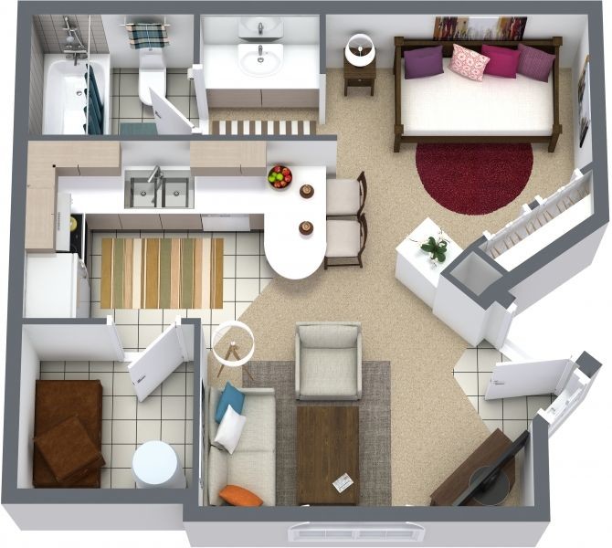 Modelo de apartamento: The Ruby1 Dormitorio, 1 Baño, 670 sq ftNo DisponibleThe Ruby - Plano 1 2 Dormitorios