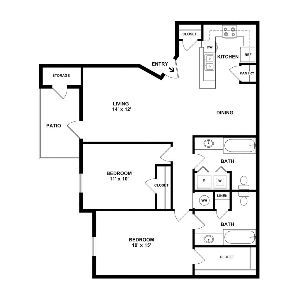 2 Dormitorios, 1 Baño, 868 pies²Disponible AhoraGalería del Modelo