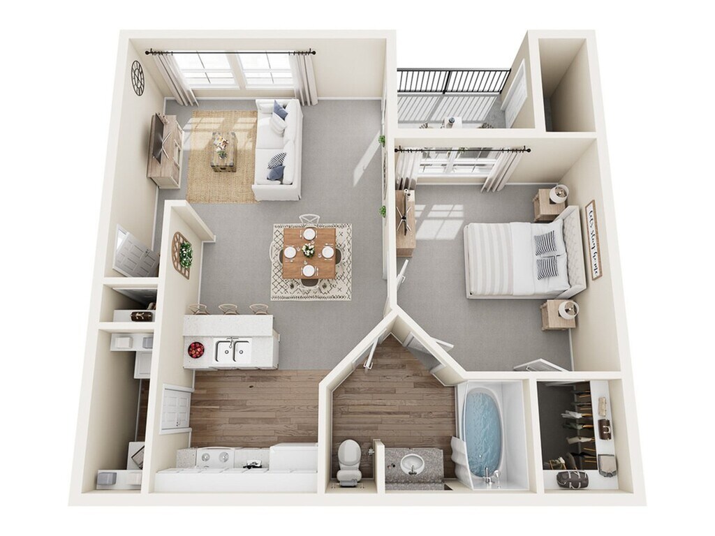 1 Dormitorio, 1 Baño, 750 pies²Disponible AhoraGalería del Modelo