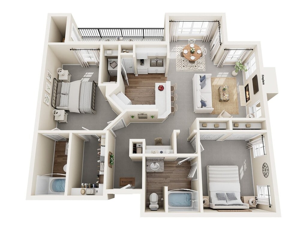 Modelo de apartamento: Picasso2 Dormitorios, 2 Baños, 1032 sq ftDisponible Ahora![]()