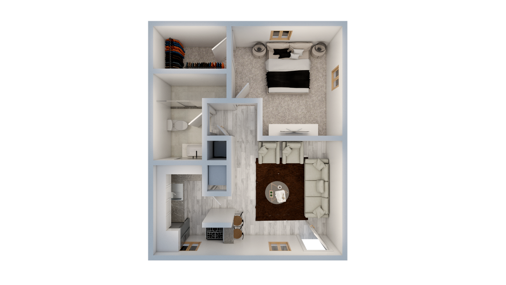Modelo de apartamento: A1-Studio$9001 Dormitorio, 1 Baño, 480 sq ftNo Disponible![]()