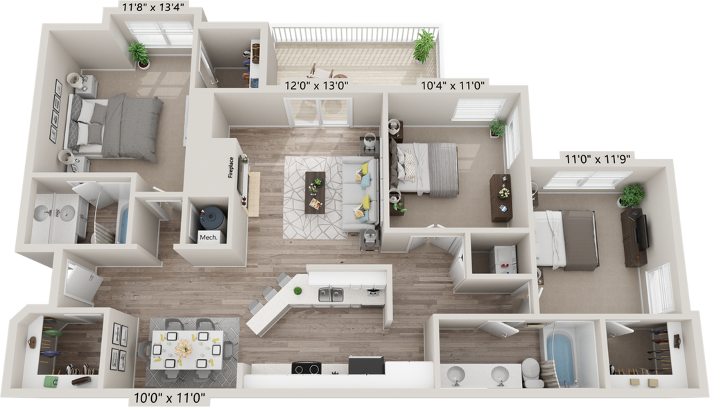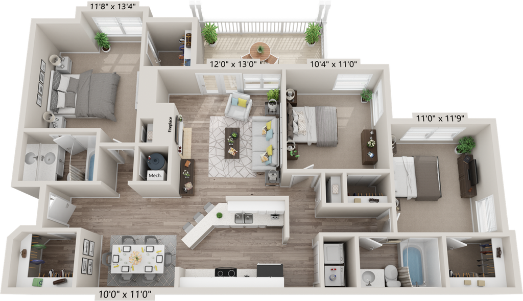 3 Dormitorios, 2 Baños, 1276 pies²Disponible AhoraGalería del Modelo