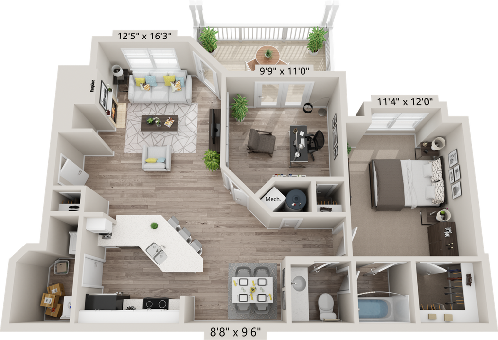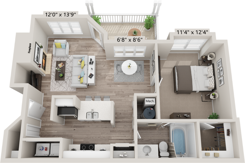1 Dormitorio, 1 Baño, 736 pies²Disponible AhoraGalería del Modelo