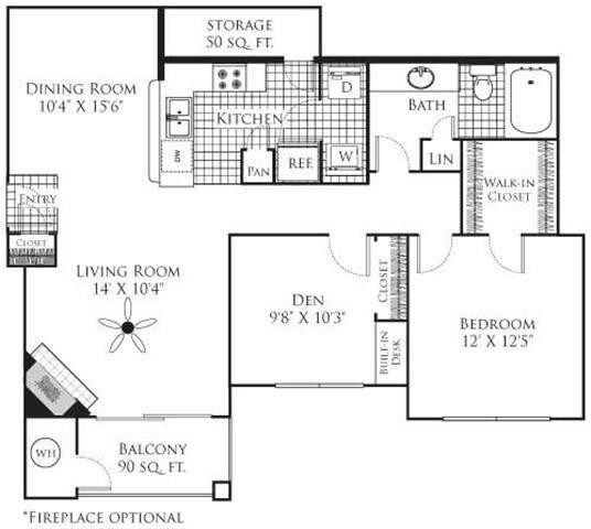 Modelo de apartamento: Reflect$1,3481 Dormitorio, 1 Baño, 615 sq ftDisponible Ahora![]()