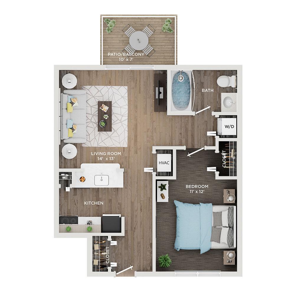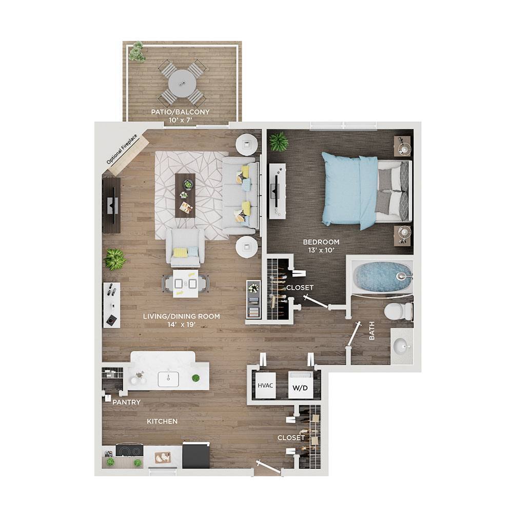 Echo - Plano 1 Unidad de apartamento: 000308Modelo de apartamento: Echo$1,3861 Dormitorio, 1 Baño, 714 sq ftDisponible AhoraCherry
