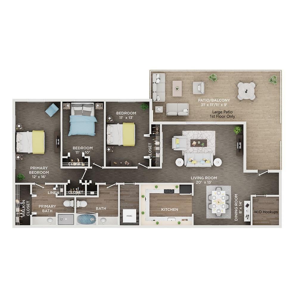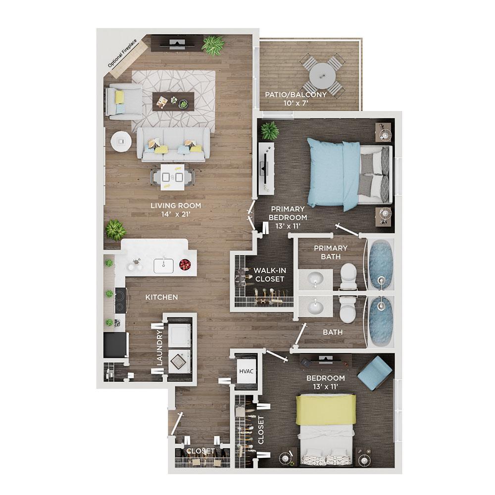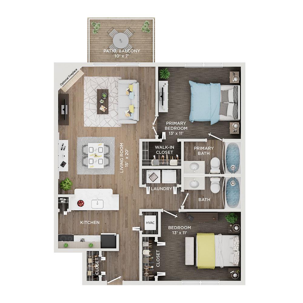 Modelo de apartamento: AndersonLlame para Precios1 Dormitorio, 1 Baño, 850 sq ftNo Disponible![]()