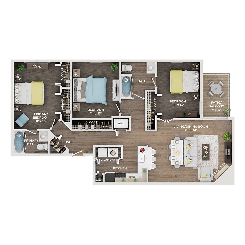 Modelo de apartamento: Cherry$1,3251 Dormitorio, 1 Baño, 627 sq ftDisponible April 19, 2026![]()