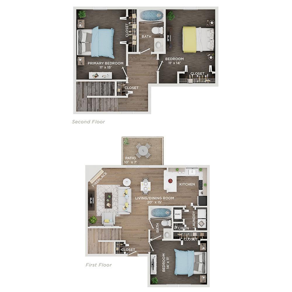 Modelo de apartamento: Echo$1,3861 Dormitorio, 1 Baño, 714 sq ftDisponible Ahora![]()