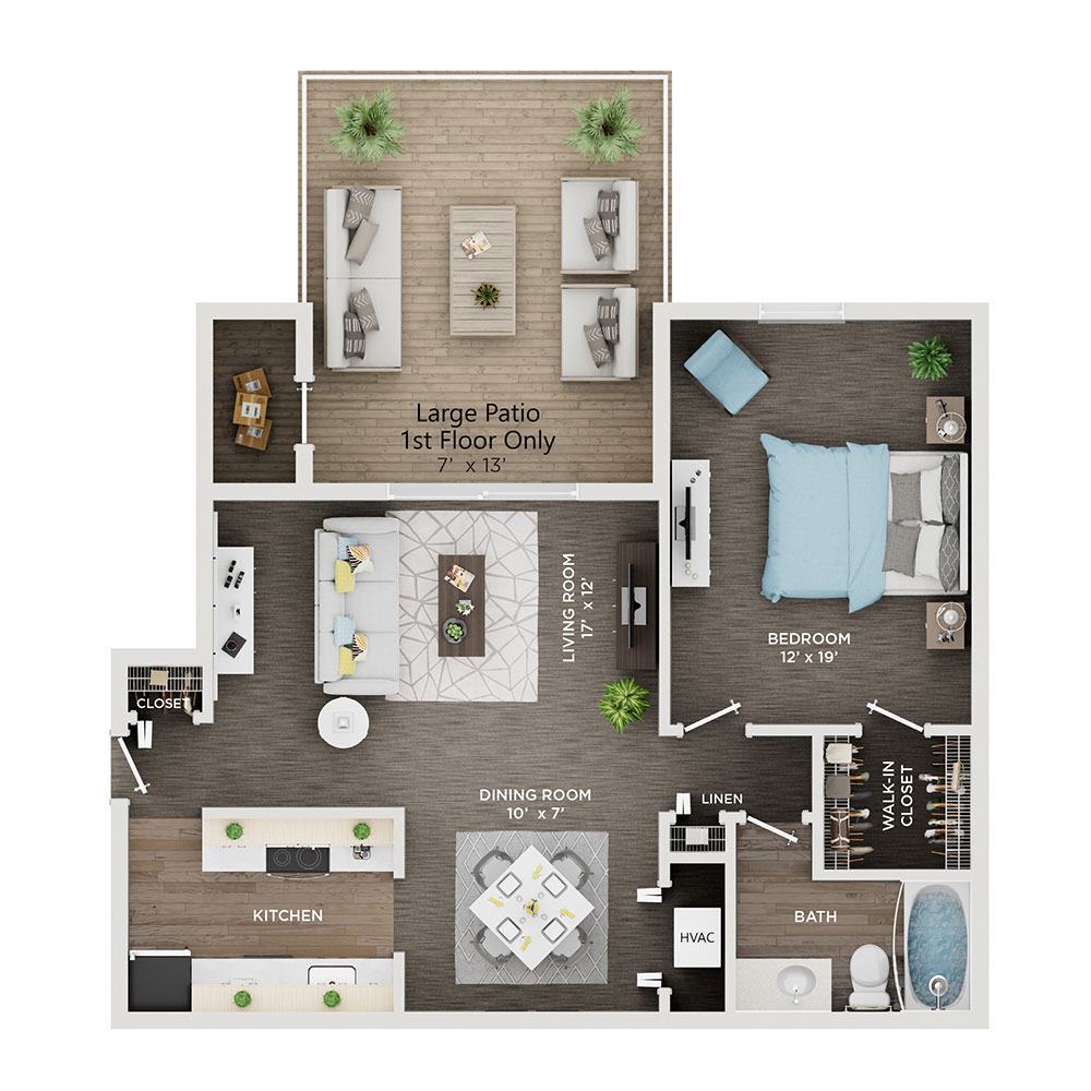 1 Dormitorio, 1 Baño, 714 pies²Disponible AhoraGalería del Modelo