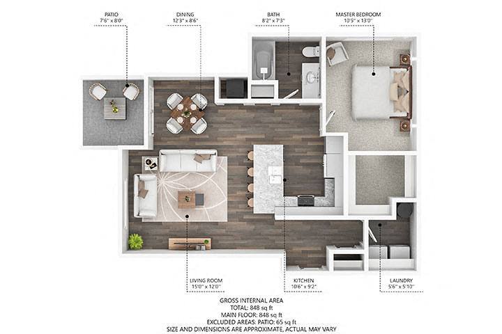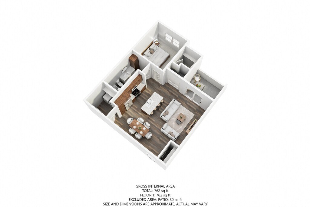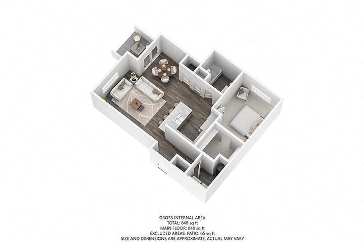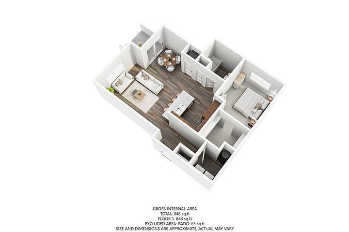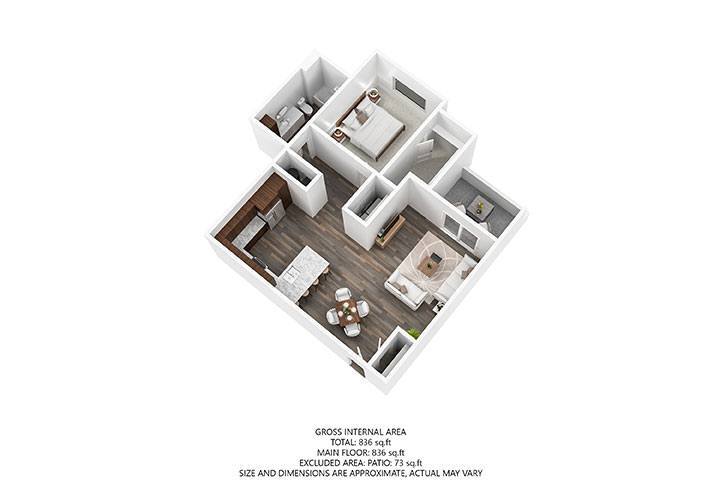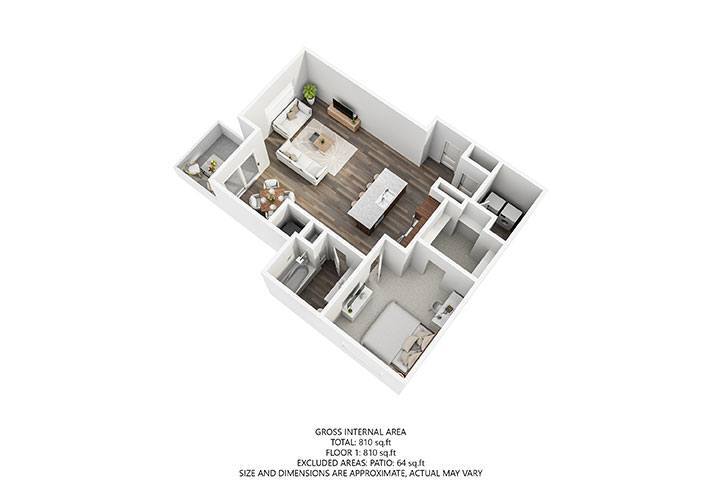 1 Dormitorio, 1 Baño, 804 pies²Disponible AhoraGalería del Modelo