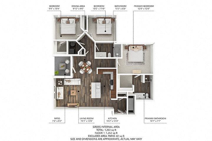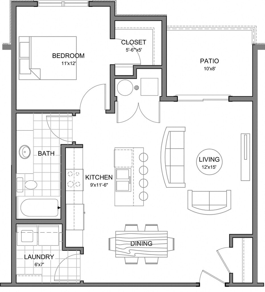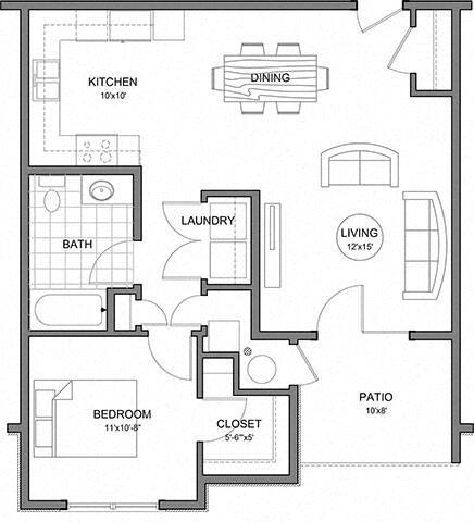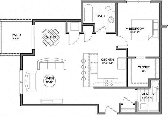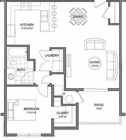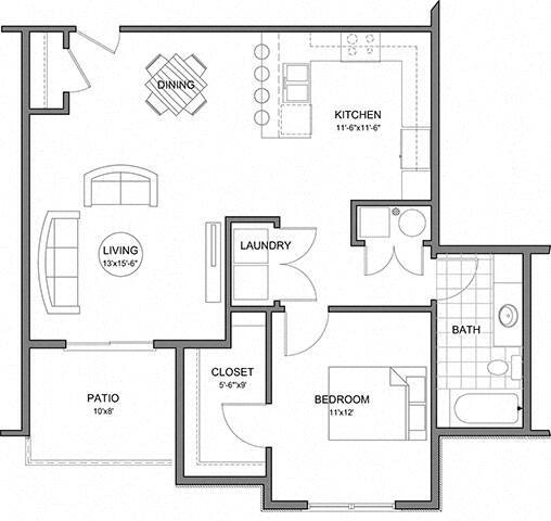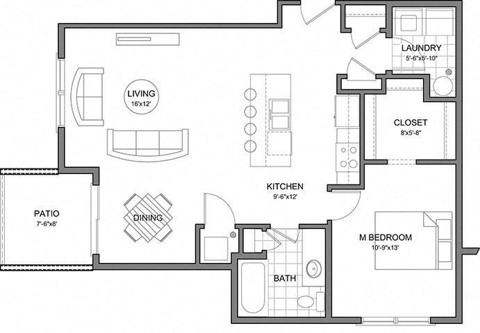 Modelo de apartamento: A1Desde $1,1781 Dormitorio, 1 Baño, 804 sq ftDisponible Ahora![]()