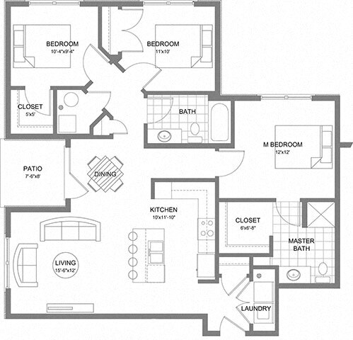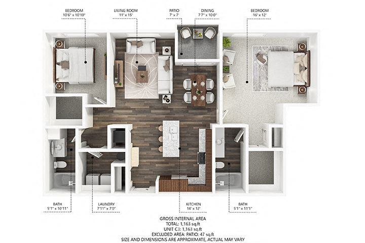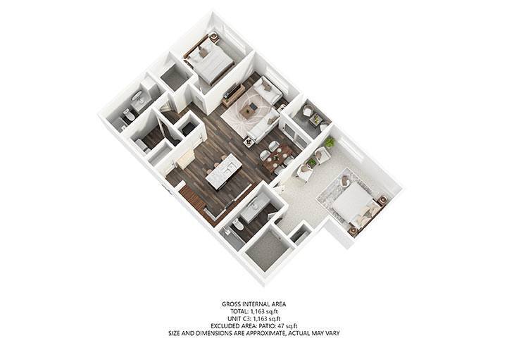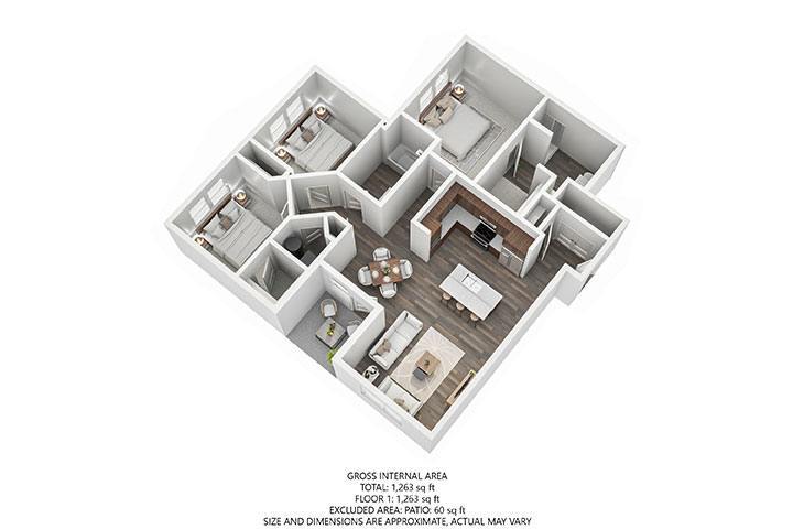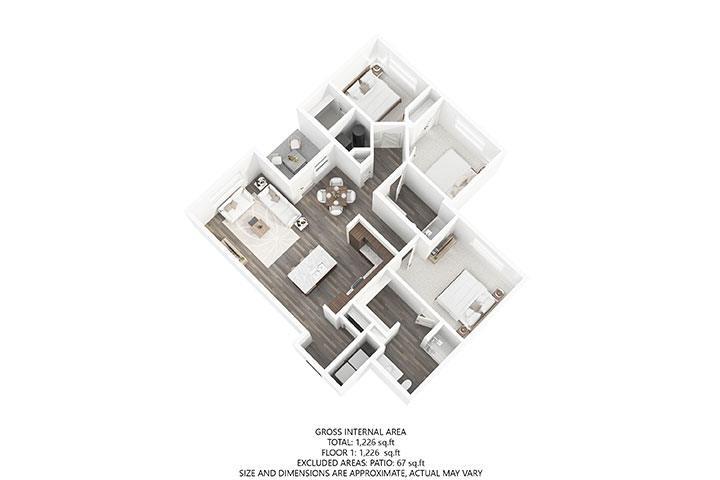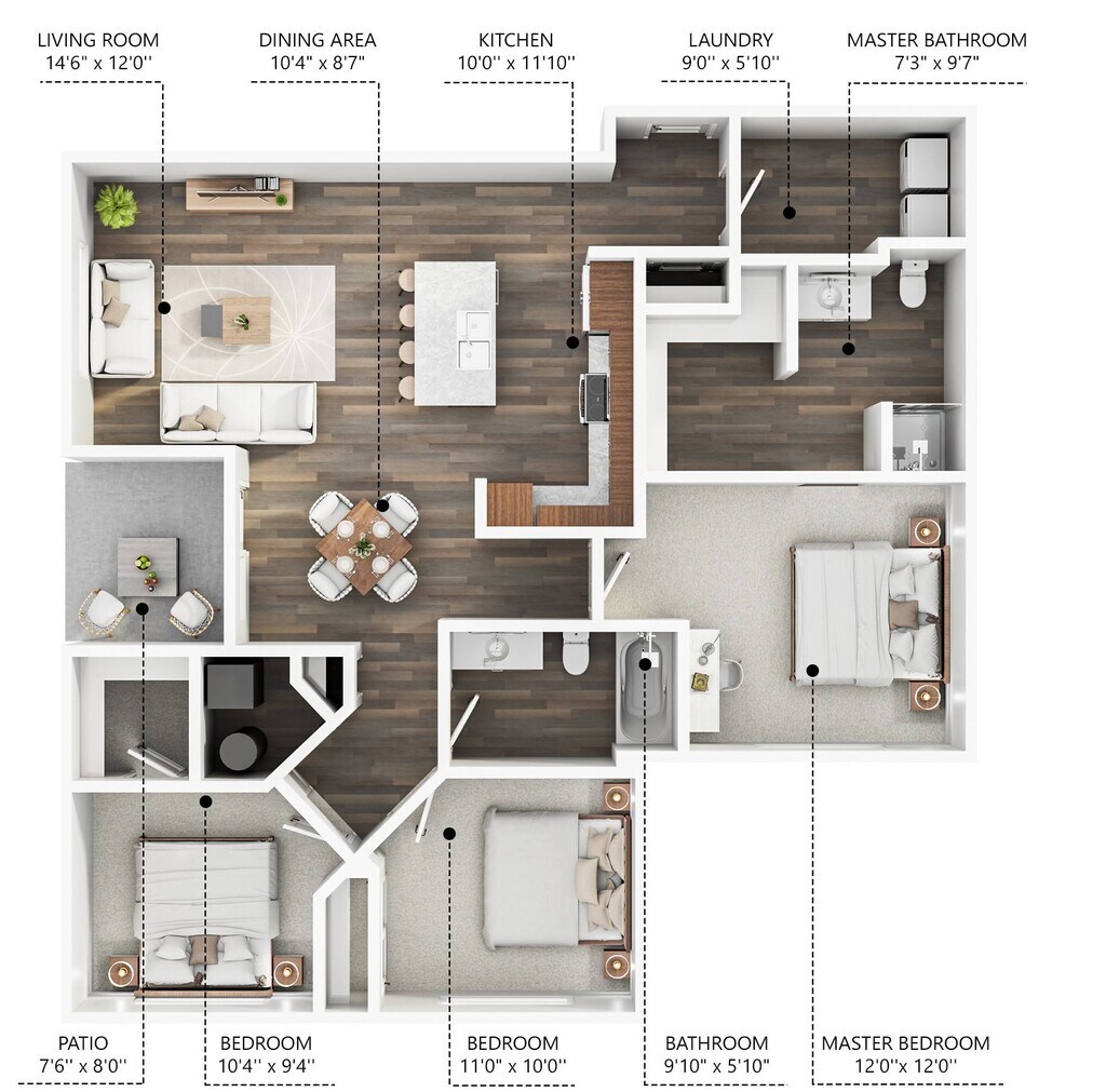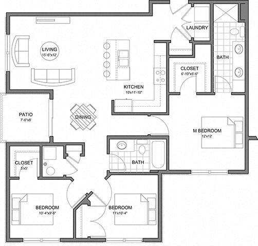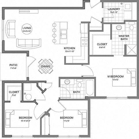Modelo de apartamento: A3Desde $1,1491 Dormitorio, 1 Baño, 804 sq ftDisponible Ahora![]()