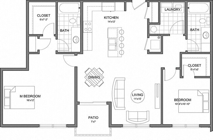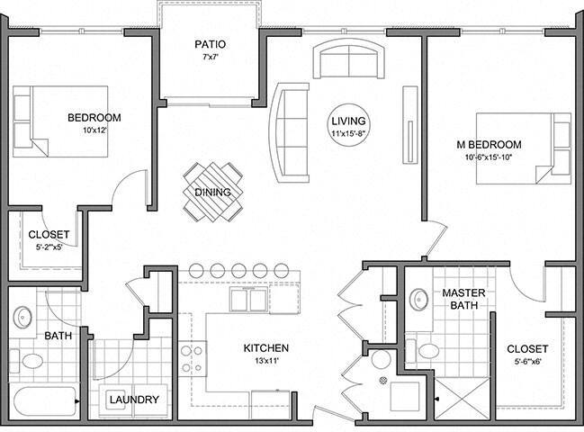 1 Dormitorio, 1 Baño, 891 pies²Disponible AhoraEl más grandeEsta opción tiene las unidades más grandes para este modeloGalería del Modelo
