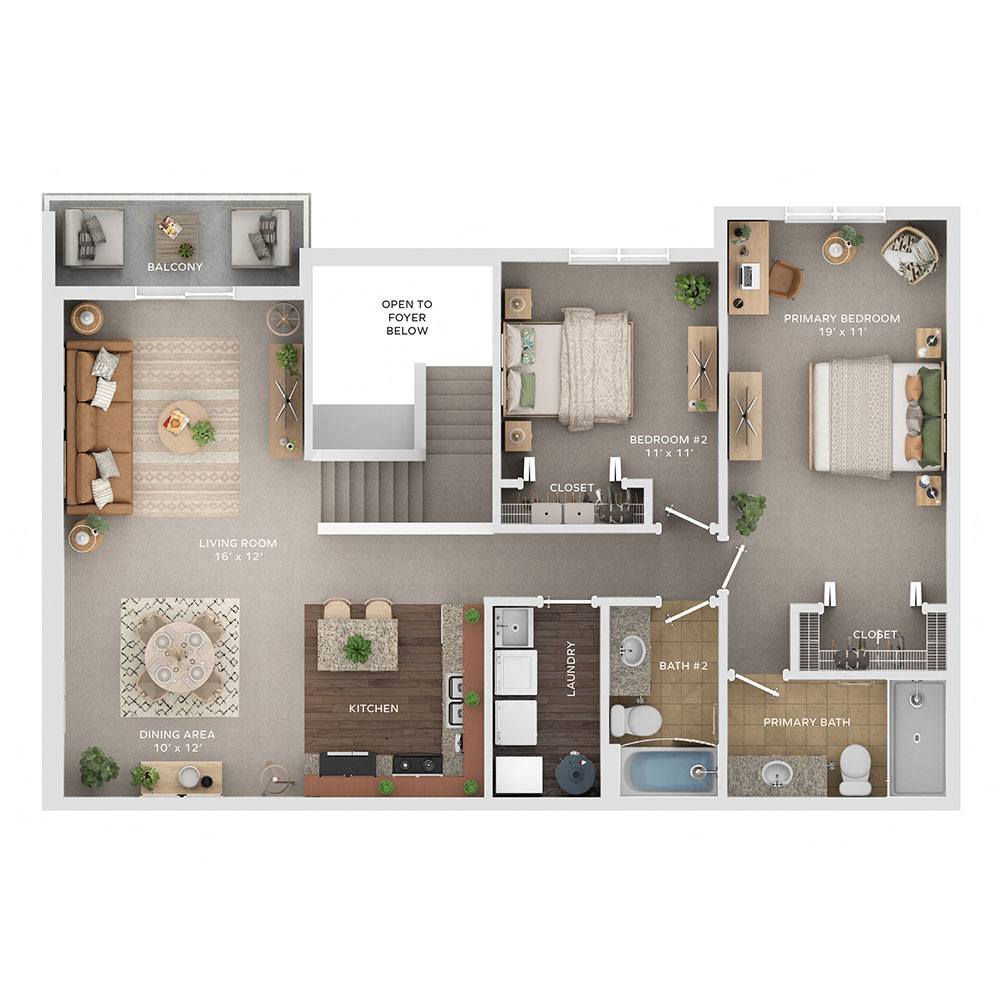 2 Dormitorios, 2 Baños, 1355 pies²Disponible AhoraGalería del Modelo