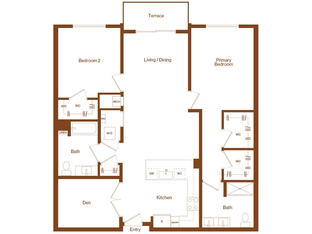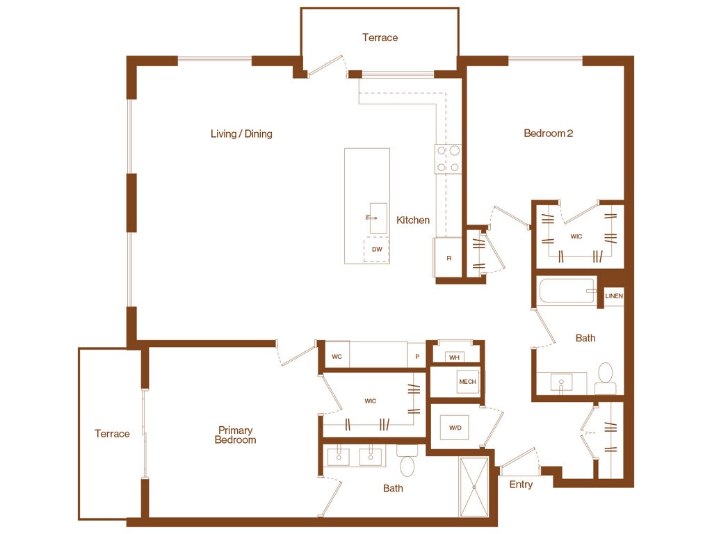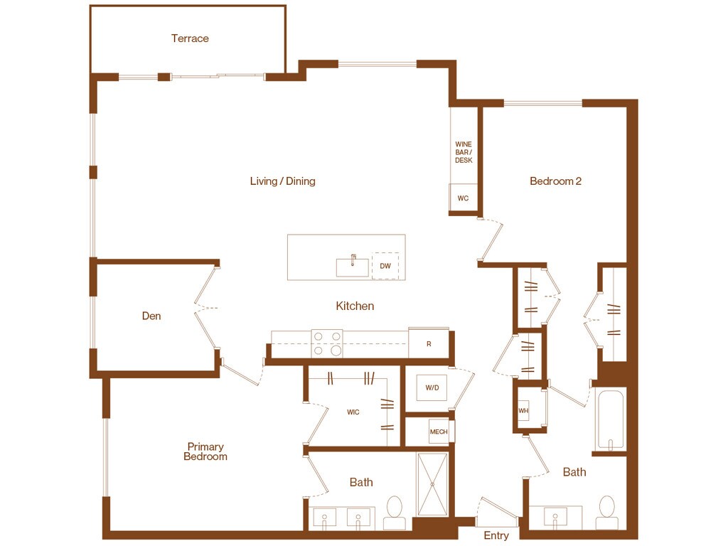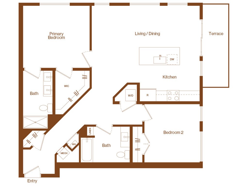 Modelo de apartamento: A5$2,9901 Dormitorio, 1 Baño, 815 sq ftDisponible Ahora![]()