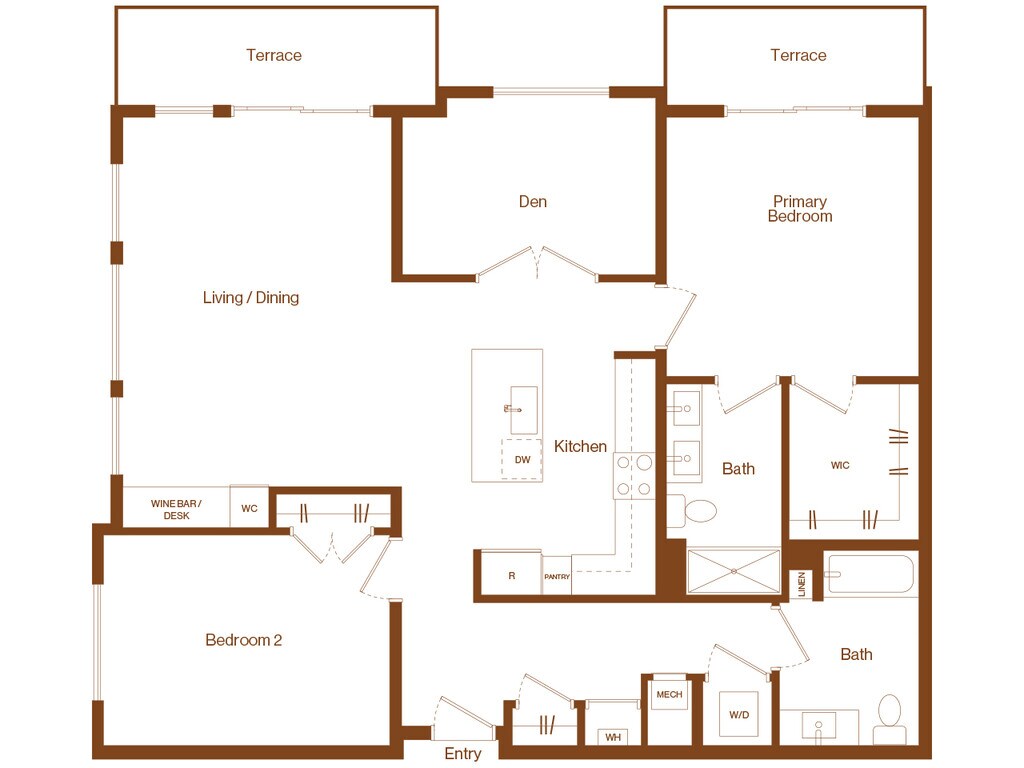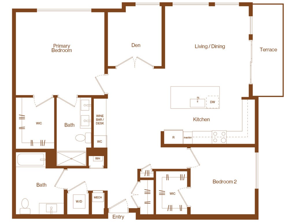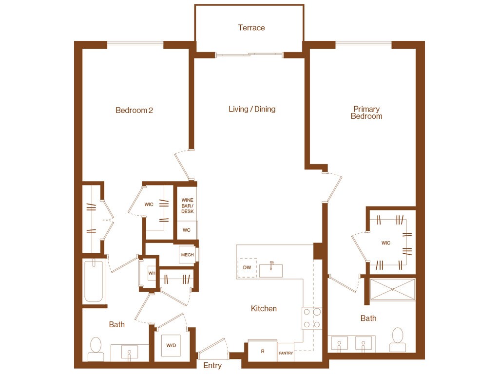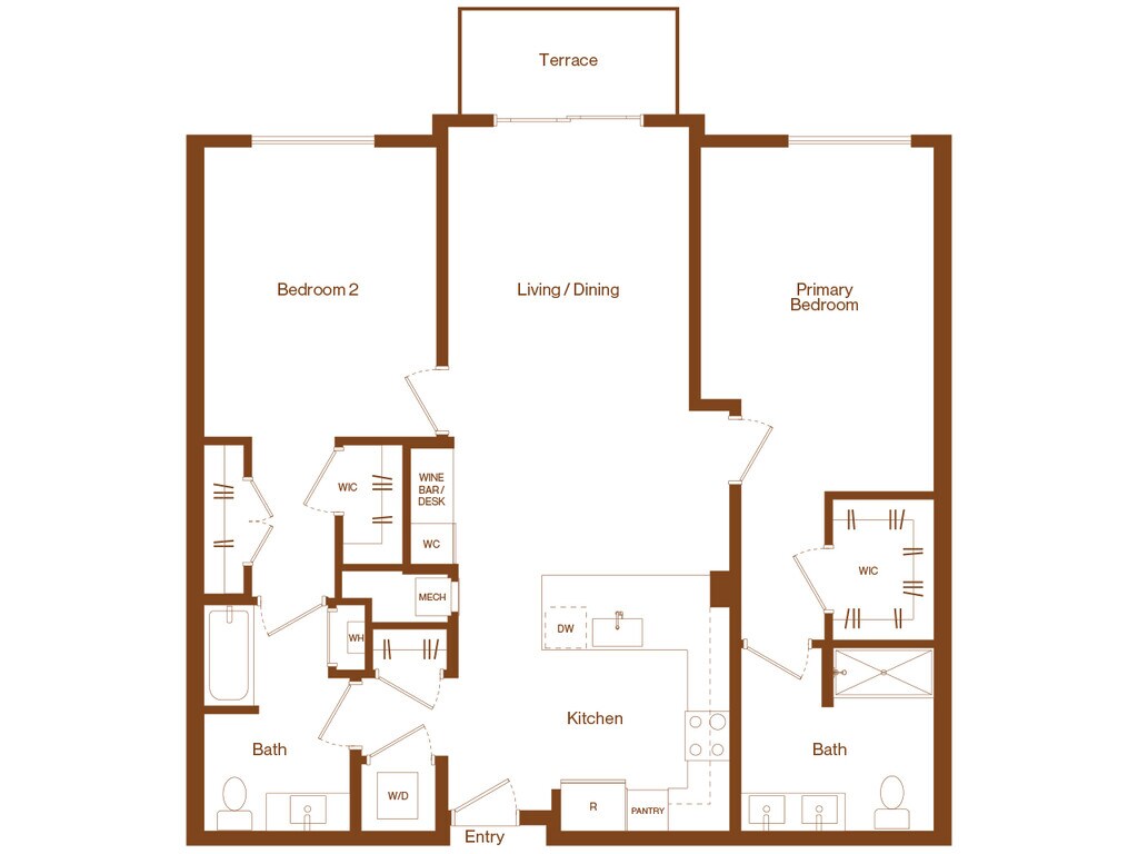 Modelo de apartamento: A5$2,9901 Dormitorio, 1 Baño, 815 sq ftDisponible Ahora![]()