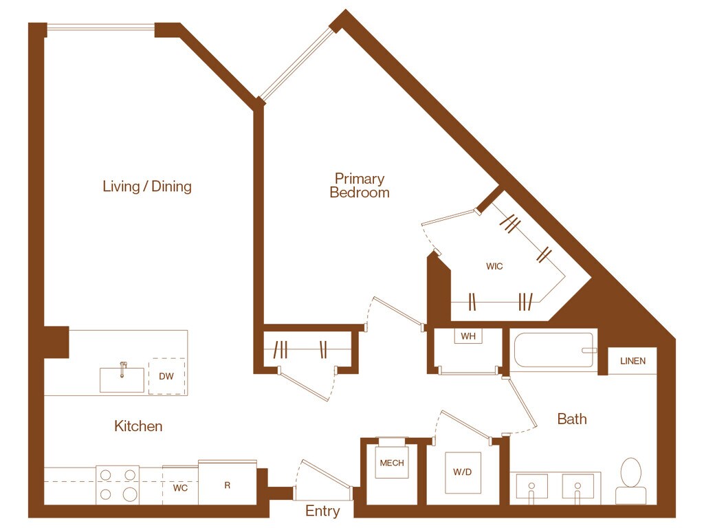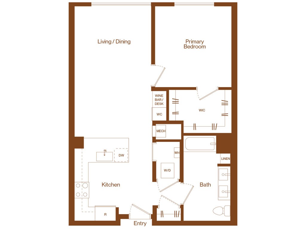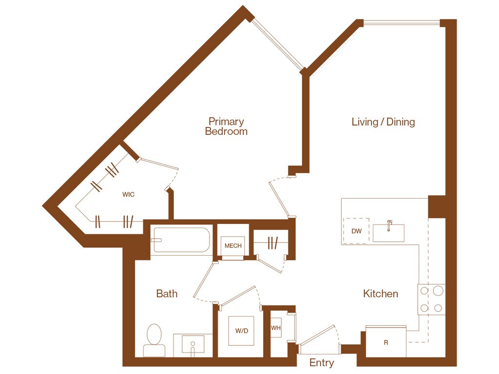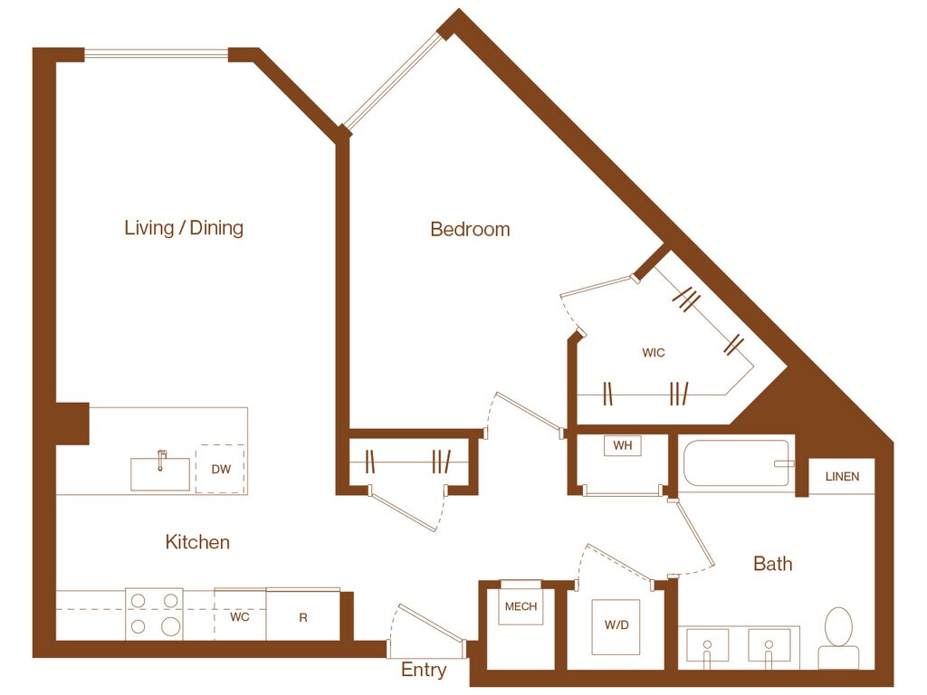 A5 - Plano 1 Unidad de apartamento: 654-AModelo de apartamento: A5$2,9901 Dormitorio, 1 Baño, 815 sq ftDisponible AhoraPlano: A6