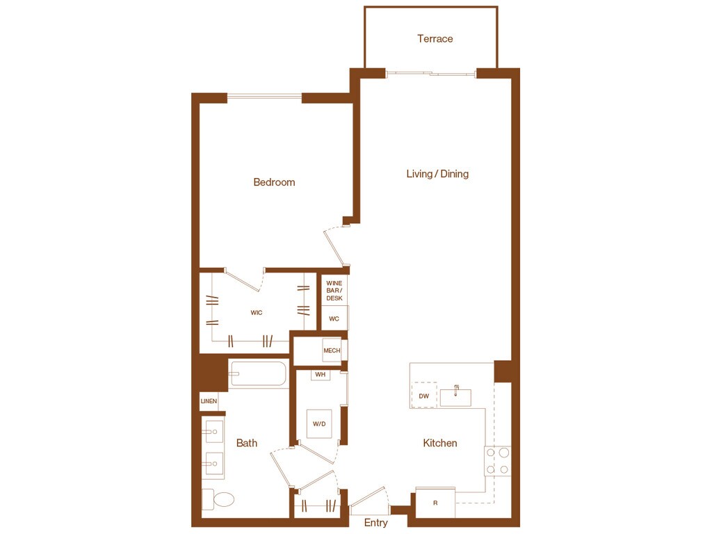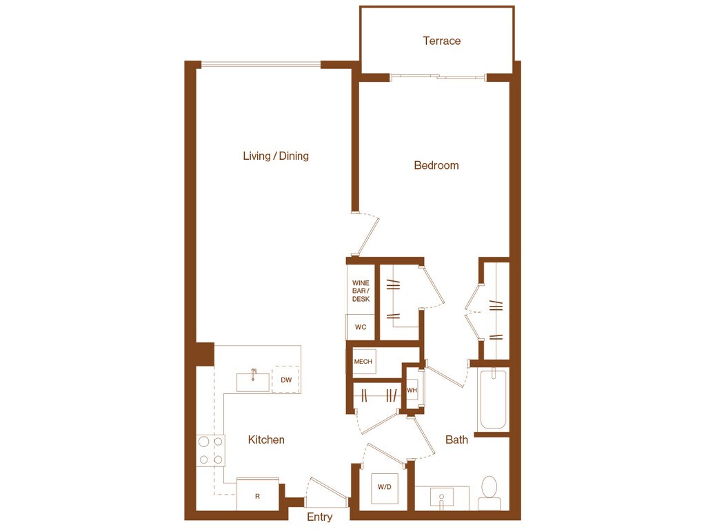 1 Dormitorio, 1 Baño, 815 pies²Disponible AhoraGalería del Modelo