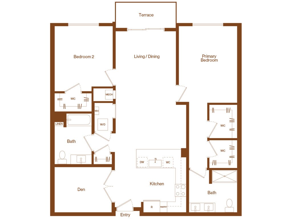 Modelo de apartamento: A7Desde $2,8001 Dormitorio, 1 Baño, 827 sq ftDisponible Ahora![]()