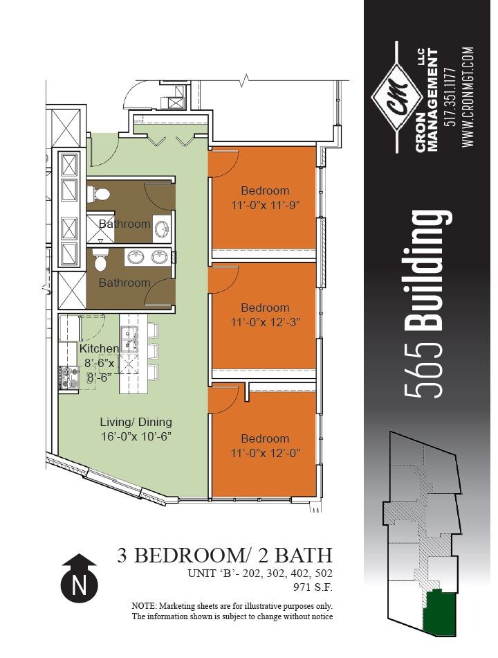 3 Dormitorios, 2 Baños, 971-1065 pies²Detalles de Diponibilidad
