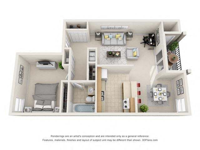 1 Dormitorio, 1 Baño, 816 pies²Galería del Modelo