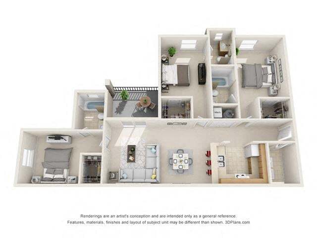 Modelo de apartamento: 2 Bed 2 Bath2 Dormitorios, 2 Baños, 1111 sq ftNo Disponible2 Bed 2 Bath - Plano 1 3 Dormitorios
