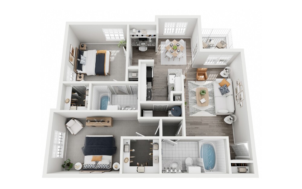 2 Dormitorios, 2 Baños, 1040 pies²Disponible AhoraEl más grandeEsta opción tiene las unidades más grandes para este modeloGalería del Modelo