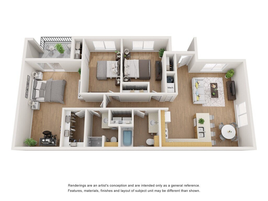 3 Dormitorios, 2 Baños, 1308 pies²Galería del Modelo