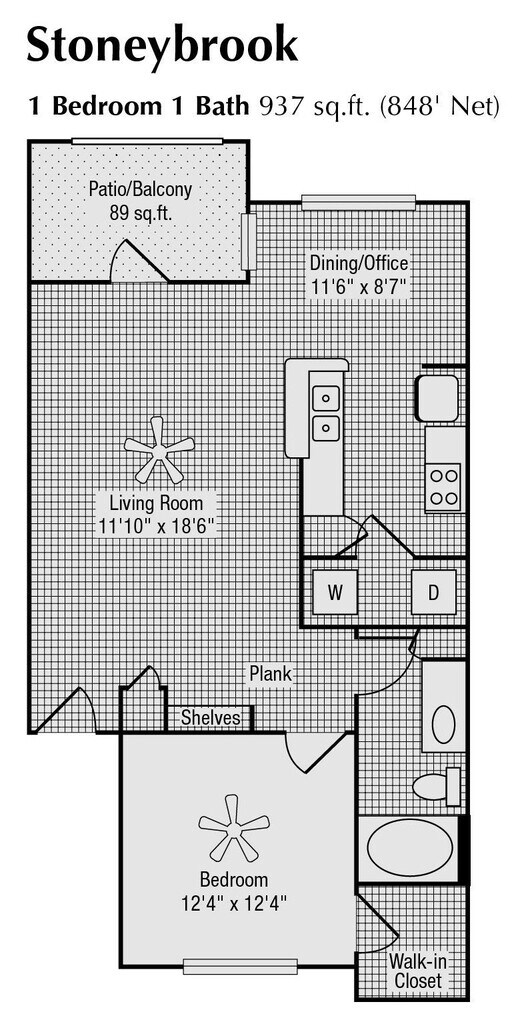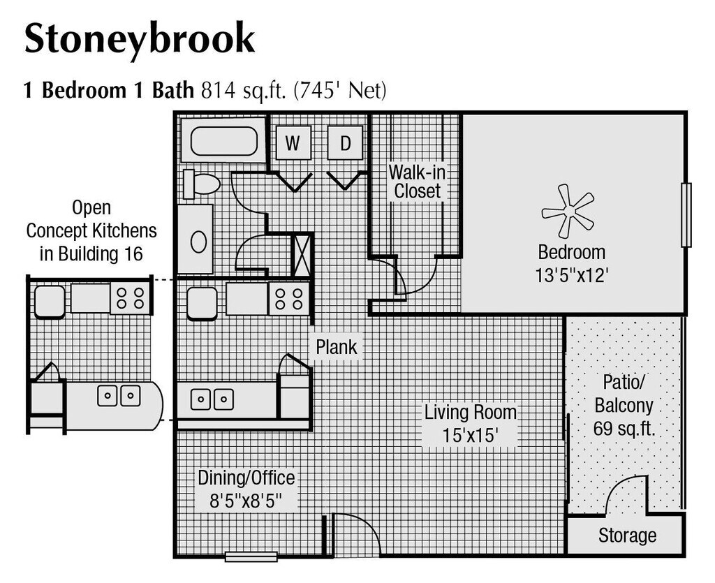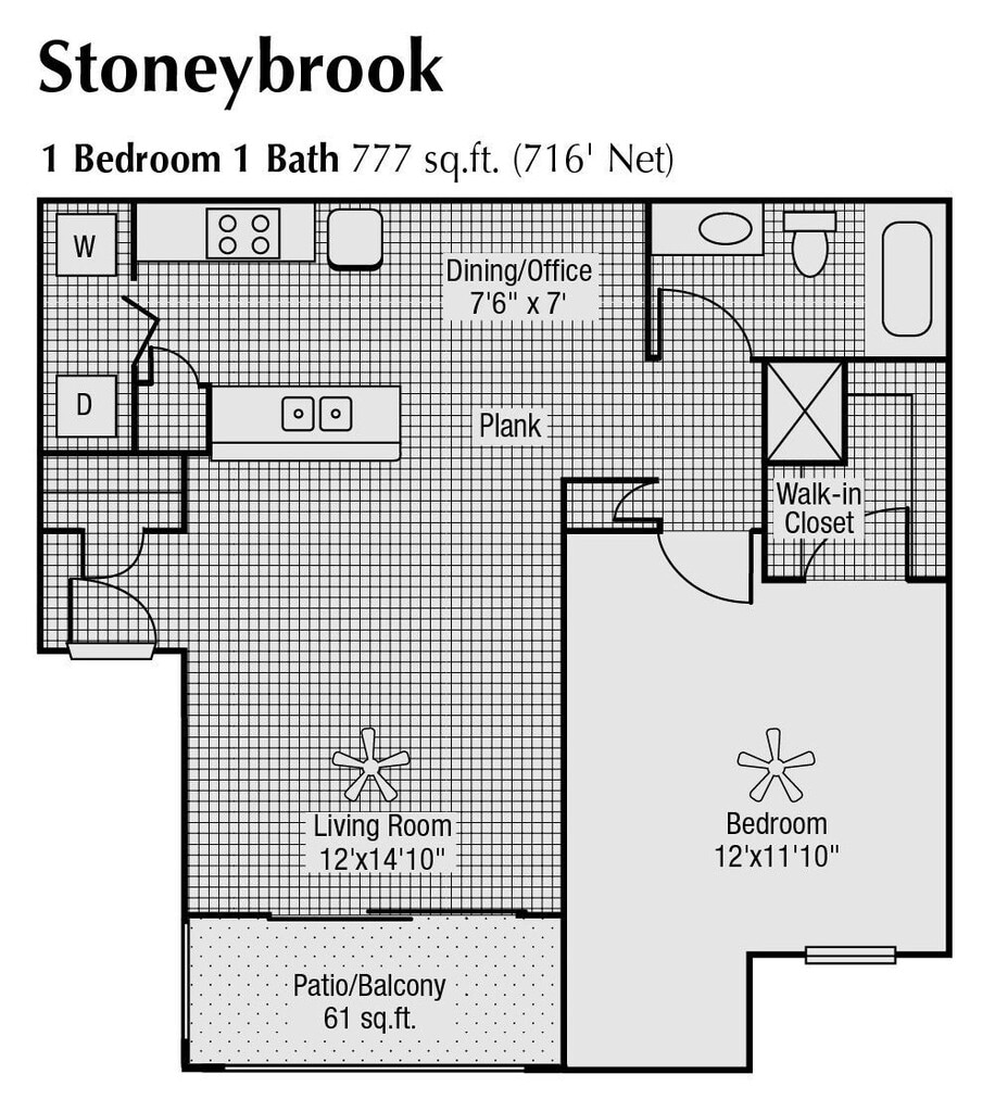 Studio 1 Bath 450 SqFt (400 Net) - Plano 1 ![]()