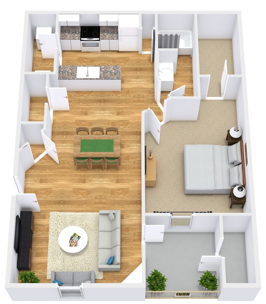 1 Dormitorio, 1 Baño, 900 pies²Disponible AhoraGalería del Modelo
