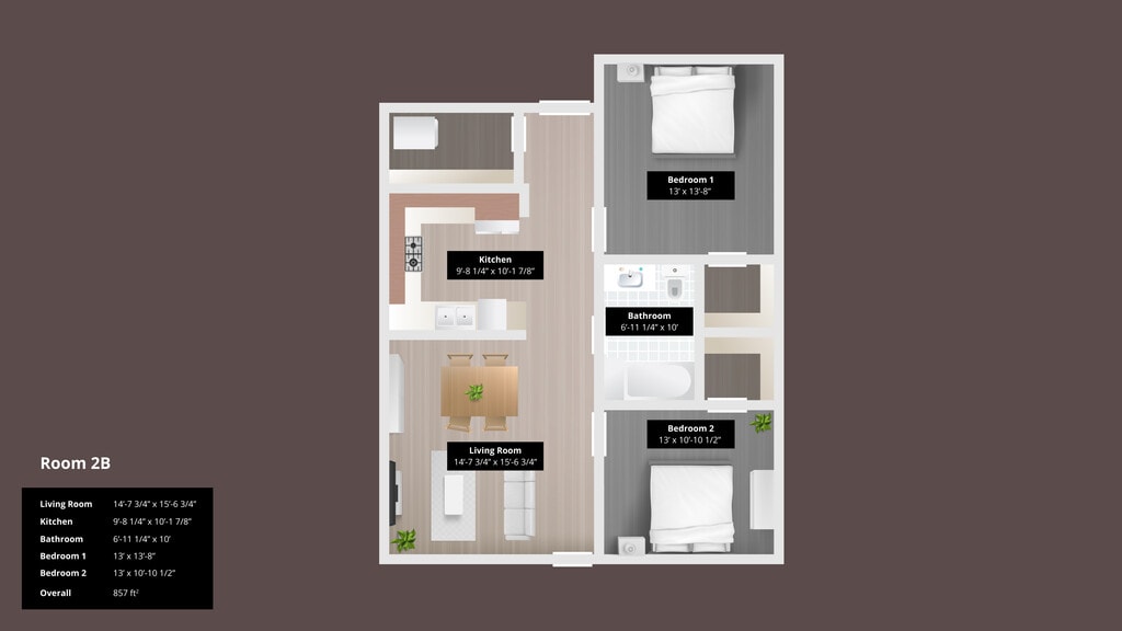 2 Dormitorios, 1 Baño, 817-982 pies²Más CargosDisponible AhoraGalería del Modelo