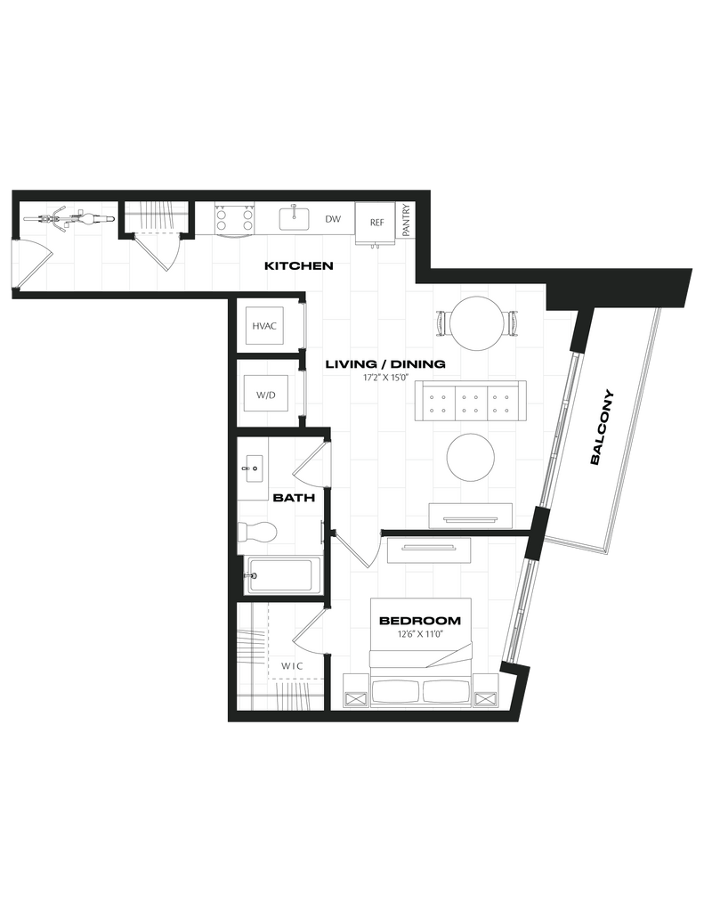 1 Dormitorio, 1 Baño, 720 pies²Disponible AhoraGalería del Modelo