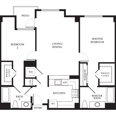 Modelo de apartamento: Potrero2 Dormitorios, 2 Baños, 1113 sq ftDisponible Ahora![]()