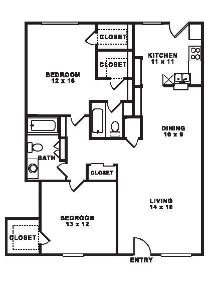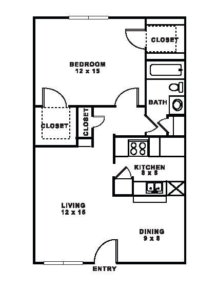 Modelo de apartamento: ADesde $8941 Dormitorio, 1 Baño, 714 sq ftDisponible AhoraPlanosFotos![]()