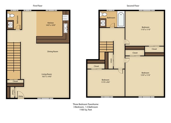 Modelo de apartamento: Three bedroom townhomeDesde $1,6993 Dormitorios, 1.5 Baños, 1100 sq ftDisponible Ahora![]()