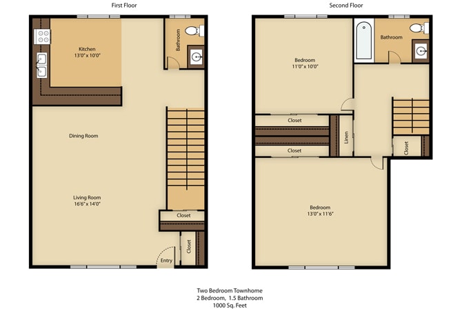 Modelo de apartamento: Two bedroom townhomeDesde $1,4502 Dormitorios, 1.5 Baños, 1000 sq ftDisponible November 10, 2025![]()