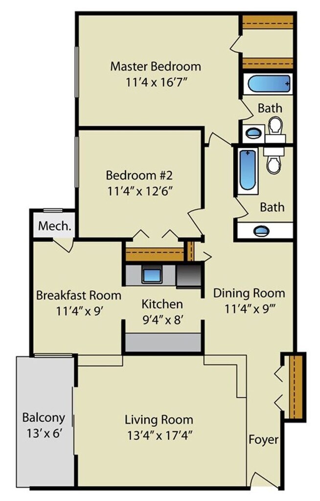 2 Dormitorios, 2 Baños, 1050 pies²Disponible AhoraGalería del Modelo