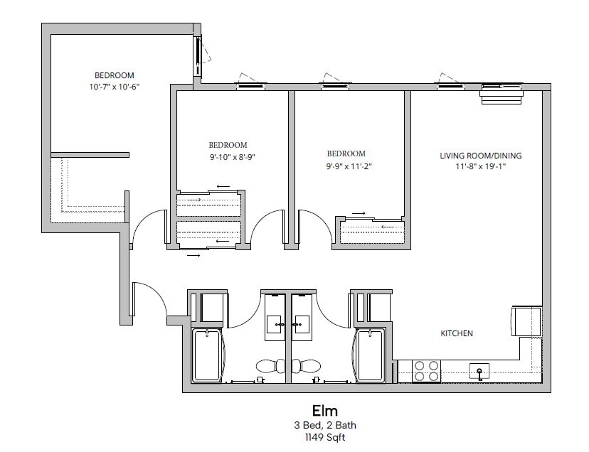 Modelo de apartamento: ElmDesde $8853 Dormitorios, 2 Baños, from 1149 sq ftNo Disponible![]()