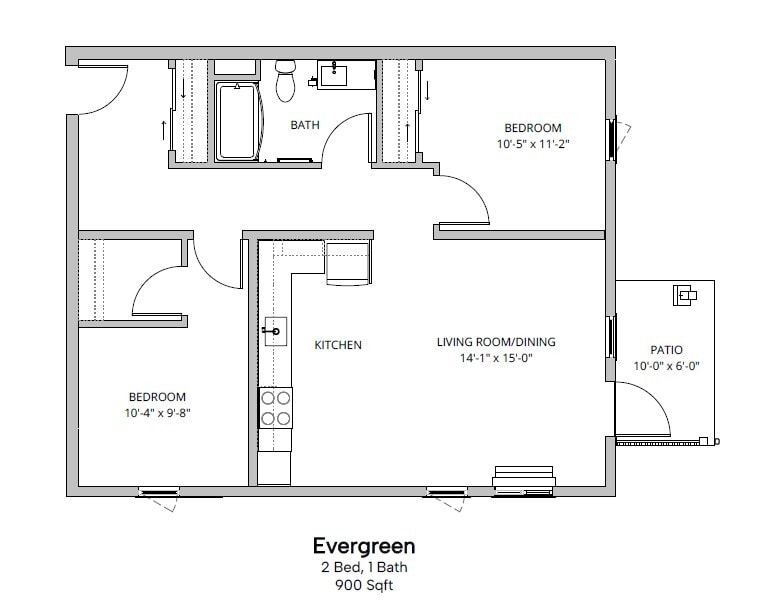 Modelo de apartamento: EvergreenDesde $7672 Dormitorios, 1 Baño, from 900 sq ftNo Disponible![]()