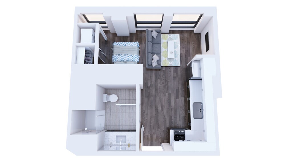 Modelo de apartamento: Sx1Estudio, 1 Baño, 412 sq ftNo Disponible![]()