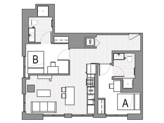 1 Dormitorio, 1 Baño, 447-581 pies²Galería del Modelo