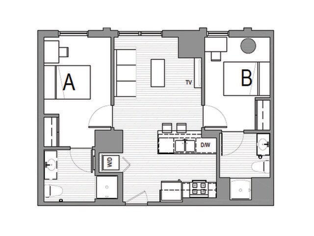 Modelo de apartamento: 2x2 Terrace2 Dormitorios, 2 Baños, 726-1075 sq ftNo Disponible![]()
