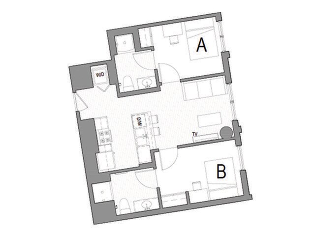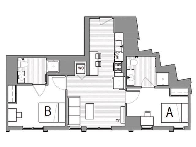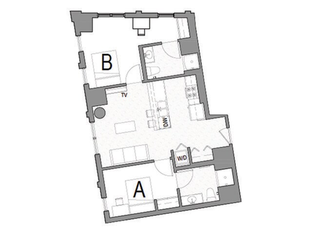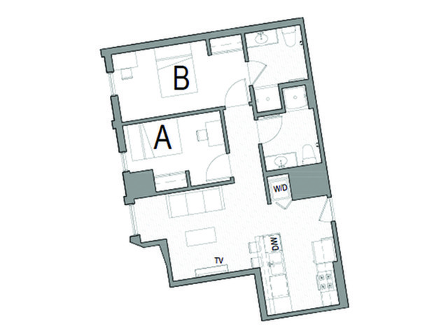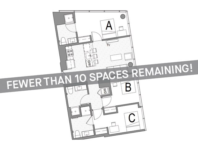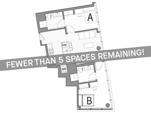 Modelo de apartamento: 1x1 Penthouse1 Dormitorio, 1 Baño, 447-581 sq ftNo Disponible![]()
