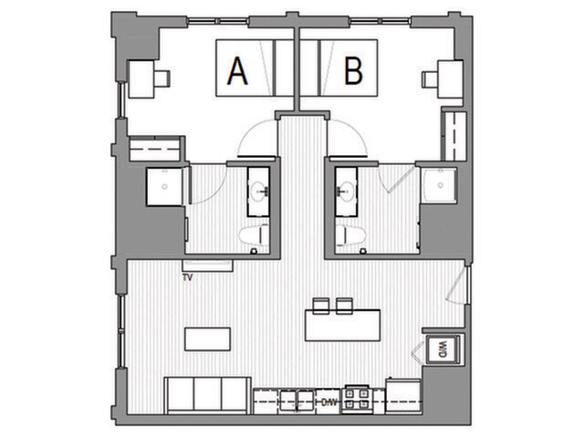Modelo de apartamento: Sx1 PenthouseEstudio, 1 Baño, 365-415 sq ftNo Disponible![]()