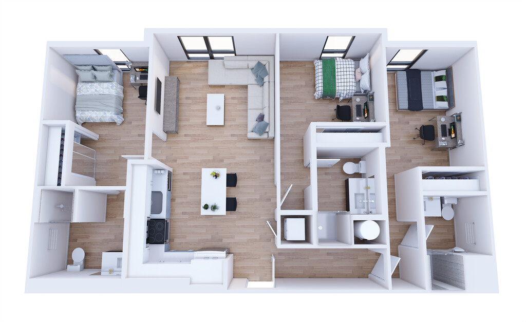 Fecha Disponibilidad Unidad Pies² No Disponible 2x2 Corner Premium 1028 pies² Características y Comodidades de Modelo