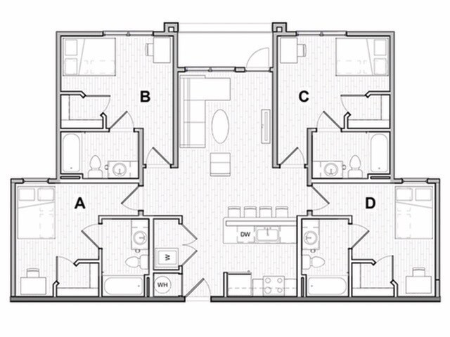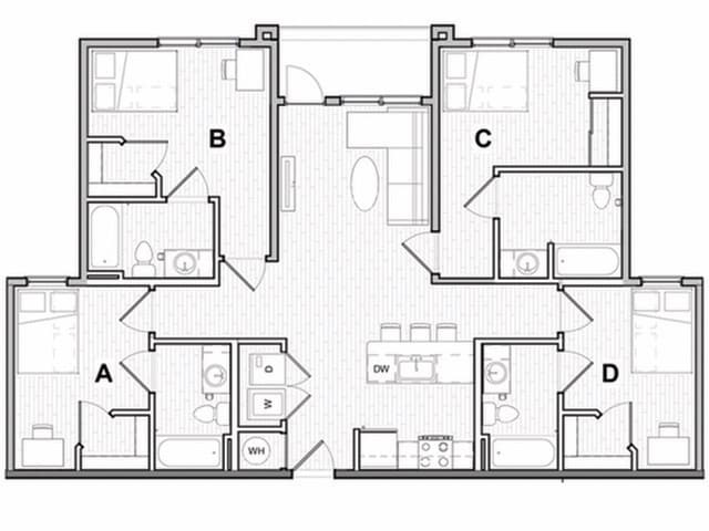 Modelo de apartamento: 4x4 Premium4 Dormitorios, 4 Baños, 1458 sq ftNo Disponible![]()