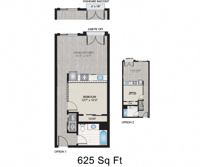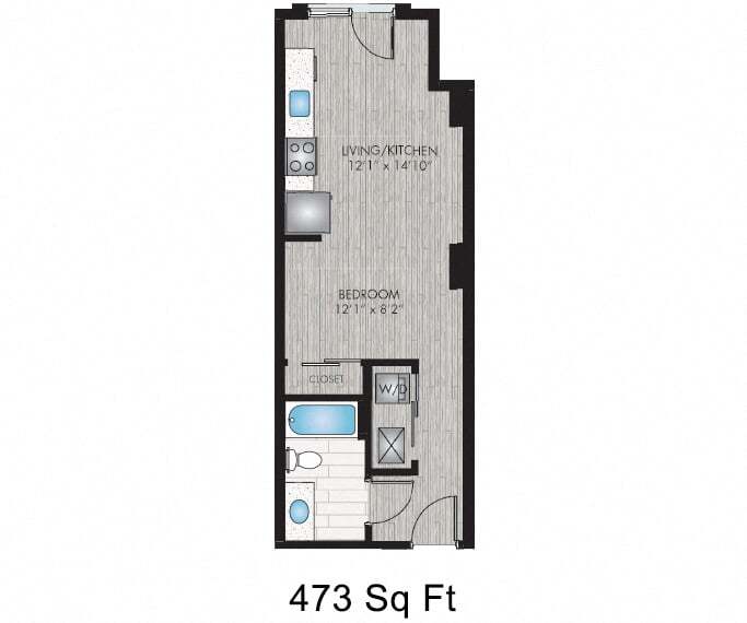Estudio, 1 Baño, 530 pies²Disponible Apr 29Galería del Modelo