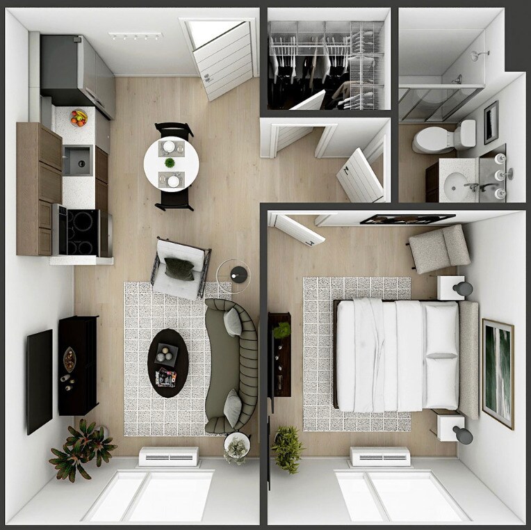 Estudio, 1 Baño, 470 pies²Disponible AhoraGalería del Modelo